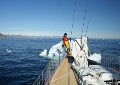 Depending on conditions, the afternoon sail will likely consist of a short passage allowing crew to familiarise themselves with sail trimming, winch handling and helming as we start our voyage across the Denmark Strait.